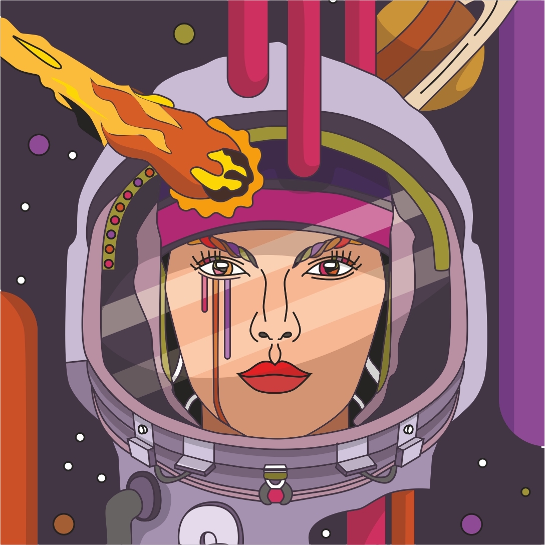 Шлем означает ограниченное состояние человека, в котором он плотно находится, завис. Вокруг небо – безвоздушное, безжизненное пространство, которое создано этим состоянием. В этом состоянии нет никакой опоры, это слабая конструкция. Но человек избавляется от этих ограничений (куски шлема летят в сторону), чтобы перейти на новый уровень, новый этап жизни.