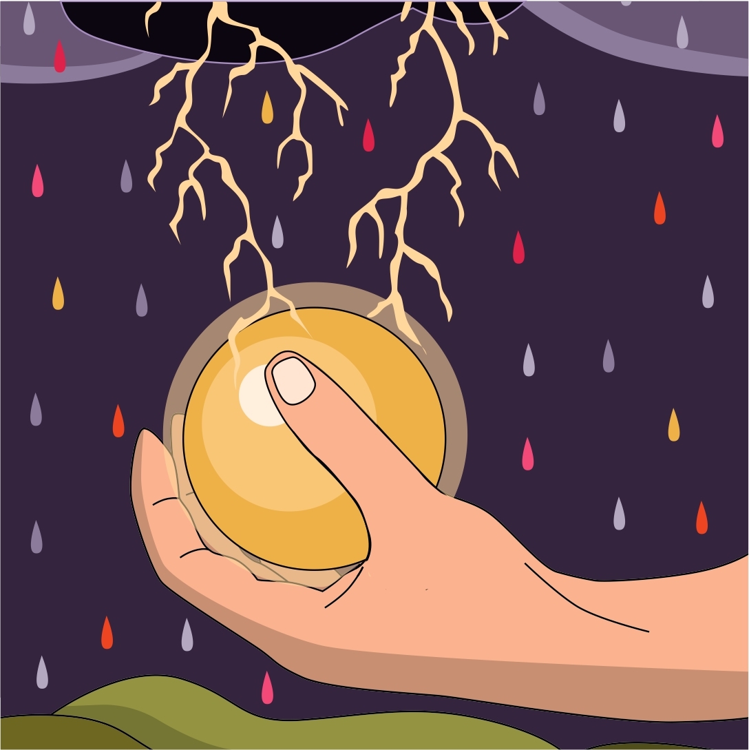 Небо символизирует состояние - Хочу, а земля состояние – Надо. Рука между этими двумя этими состояниями фокусирует энергию.