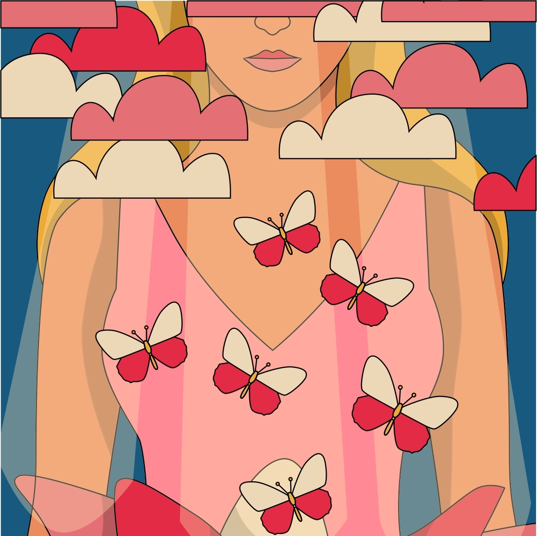 Человек купается в любви. В этом задействованы сердце и ум, в которых идет взаимообмен. А облака сверху показывают связь с Богом.
