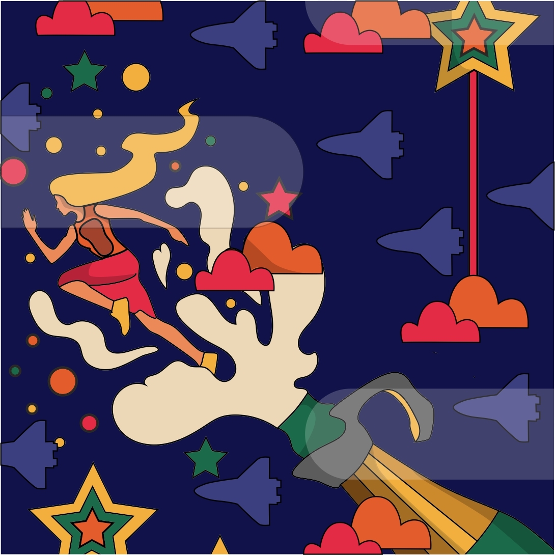 Девушка (внутри нее пробка от шампанского) вылетает из бутылки. Так человек разрешает себе жить и действовать свободно.