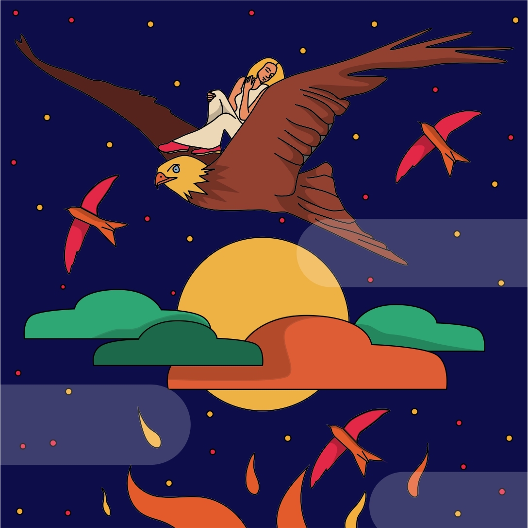 Девушка парит выше облаков, умеет быть наедине с собой, понимает свою значимость и свою ценность. Волки – как образ людей и тех ситуаций, которые хотят сбить ее с толку, хотят чтобы она потеряла веру в себя.