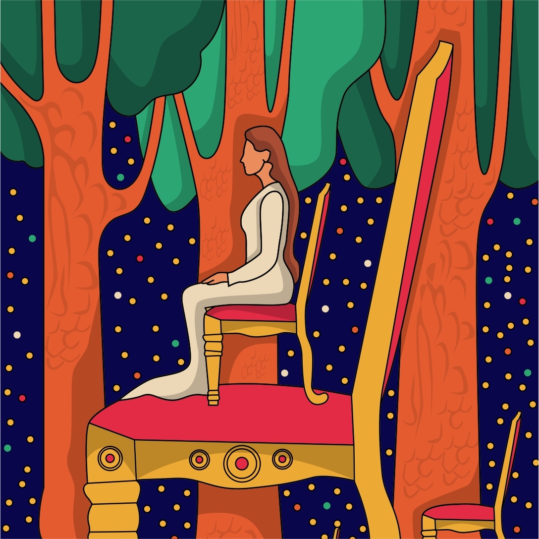 Человек сидит на стуле, в окружении многочисленных стульев. Он схватился за однообразие и боится развиваться, боится выходить на новый уровень.