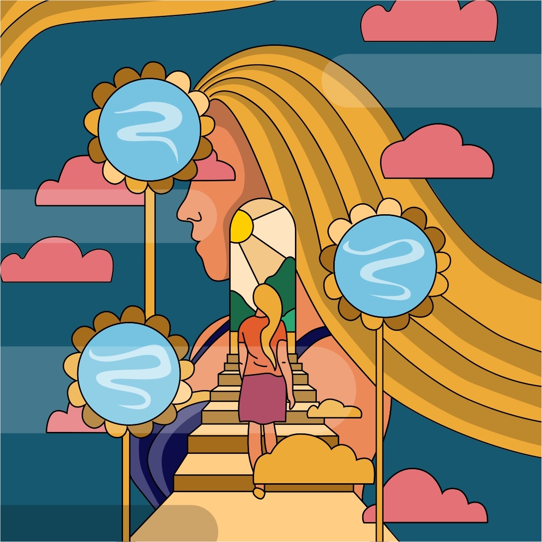 Вместо того, чтобы находиться в ущербном состоянии, человек по лестнице поднимается вверх к новому себе, к реализации своих возможностей. Зеркала – как символ отражения того, чему мы завидуем в других людях. Но на самом деле это другие люди «зеркалят» нам, показывая - чего мы на самом деле хотим и сигналя, что сейчас мы идем не туда.